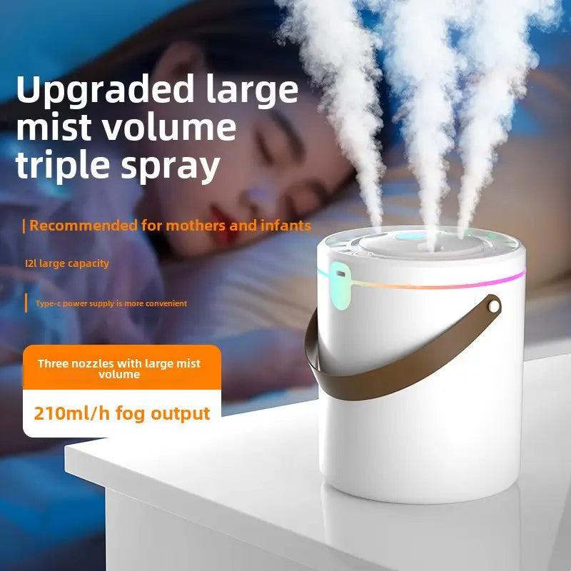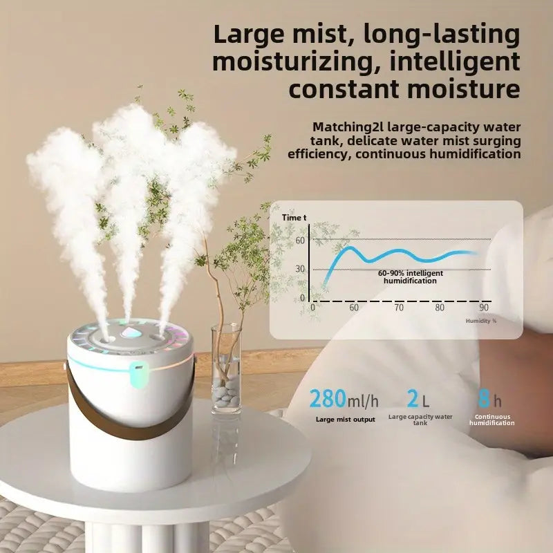 Ultraschall-Luftbefeuchter mit Dreifach-Sprühnebel – ideal für ein gesundes Raumklima. Mit großem 2,1L Wassertank, hoher Nebelausstoß von 210 ml/h und leisem Betrieb, perfekt für Mütter, Babys und Schlafzimmer. USB-C-Stromversorgung für mehr Komfort.