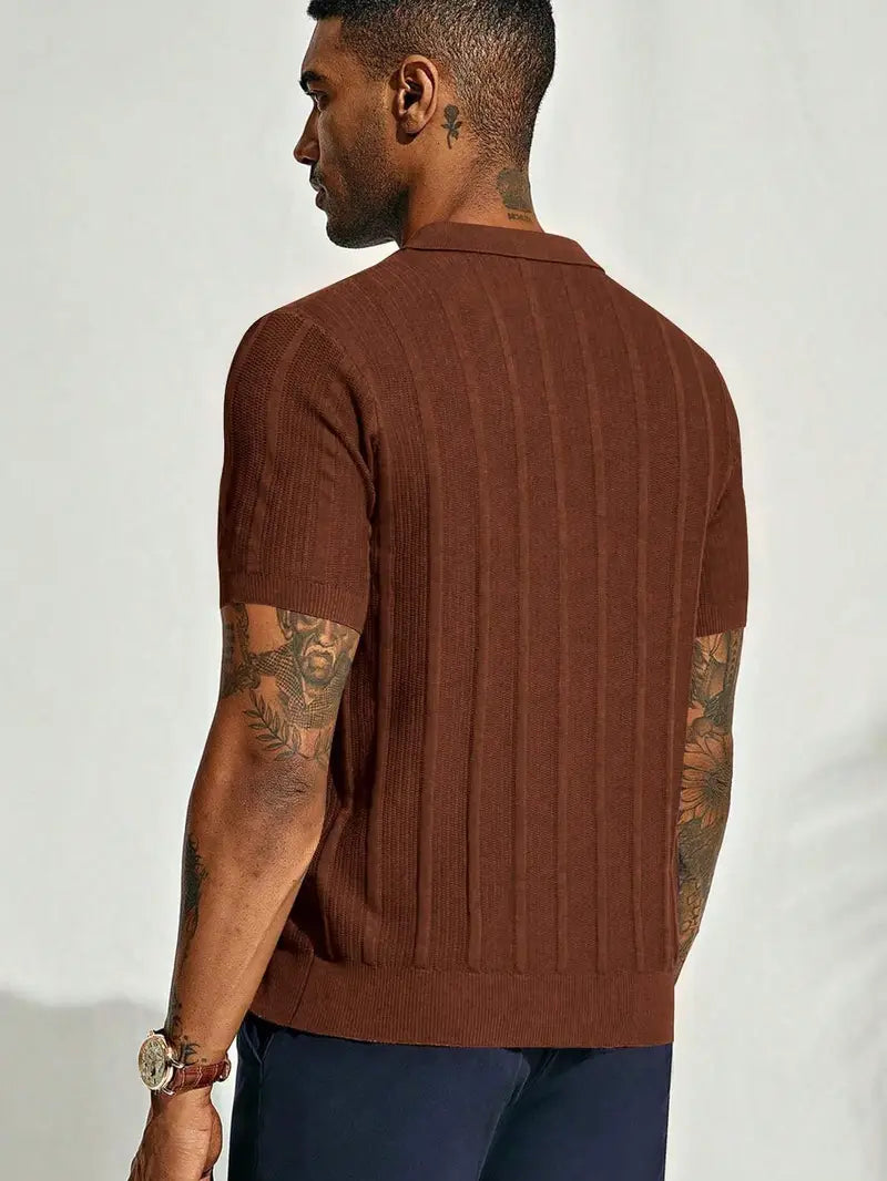 Herren-Strickhemd, kurzärmelig, gestreifter Druck, lässiger Kragen, Sommermode.