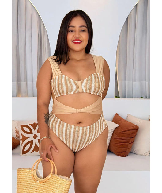 El Maiô Nilo Recorte combina estructura, modernidad y un acabado artesanal sofisticado. Su diseño con bojo removible y alças anchas con amarre lateral ofrece soporte, comodidad y un ajuste firme.